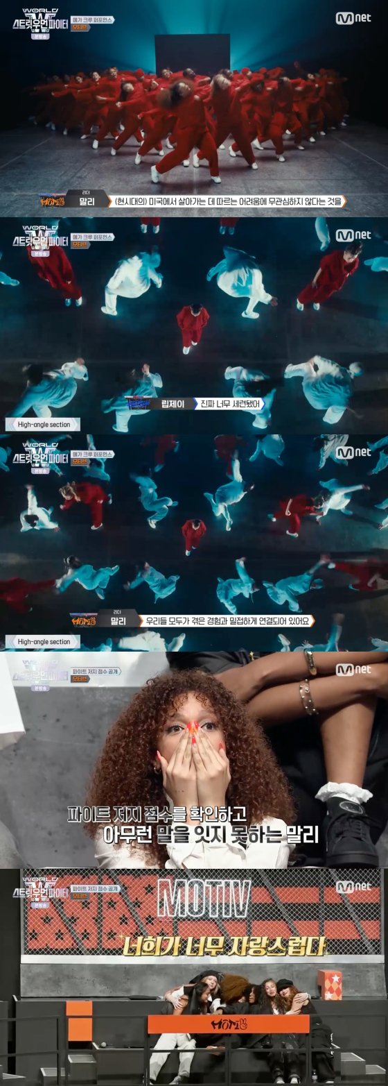 모티브의 메가 크루 미션 최종 점수는 1천160점. 높은 점수에 말을 잃은 말리는 "모든 저지들한테 만점을 얻었을 때 제 연출력에 대한 확신을 얻었다. 우리를 제대로 봐 줘서 고맙다"고 소감을 밝혔다.