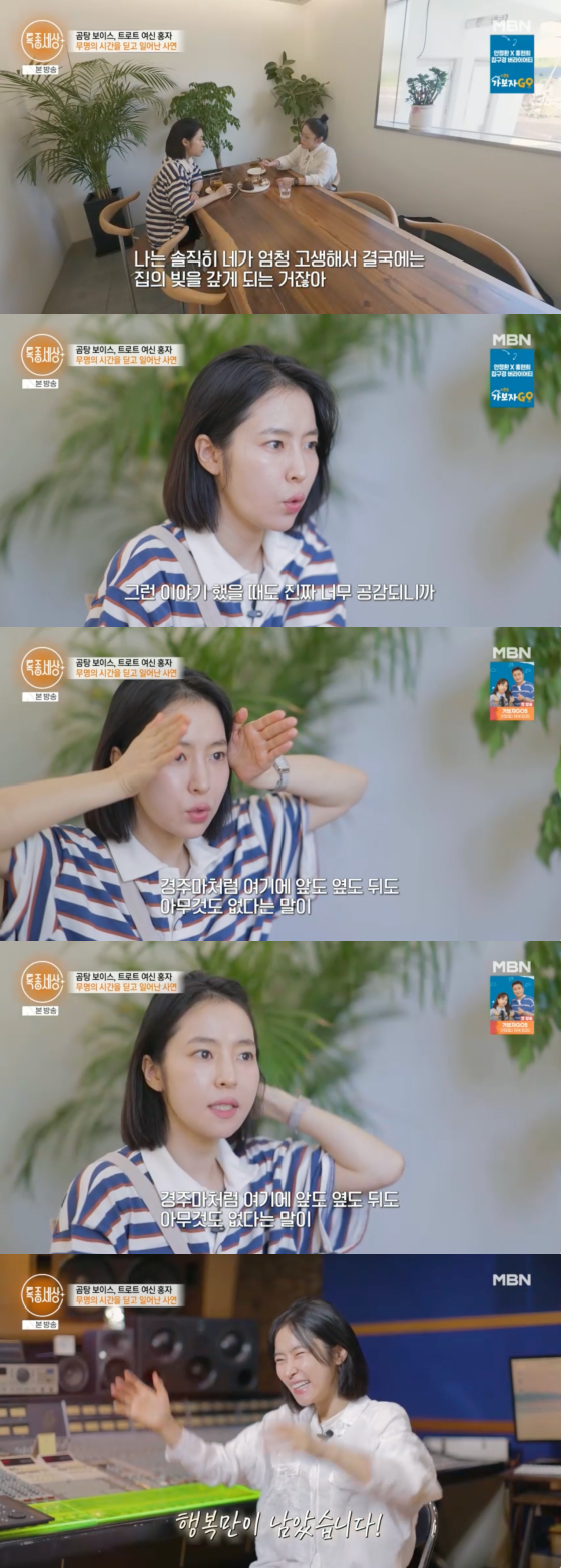 홍자는 "돈 벌어서 가장 먼저 한 게 엄마 빚을 갚고, 엄마 신용을 회복시킨 일"이라고 고백했다.