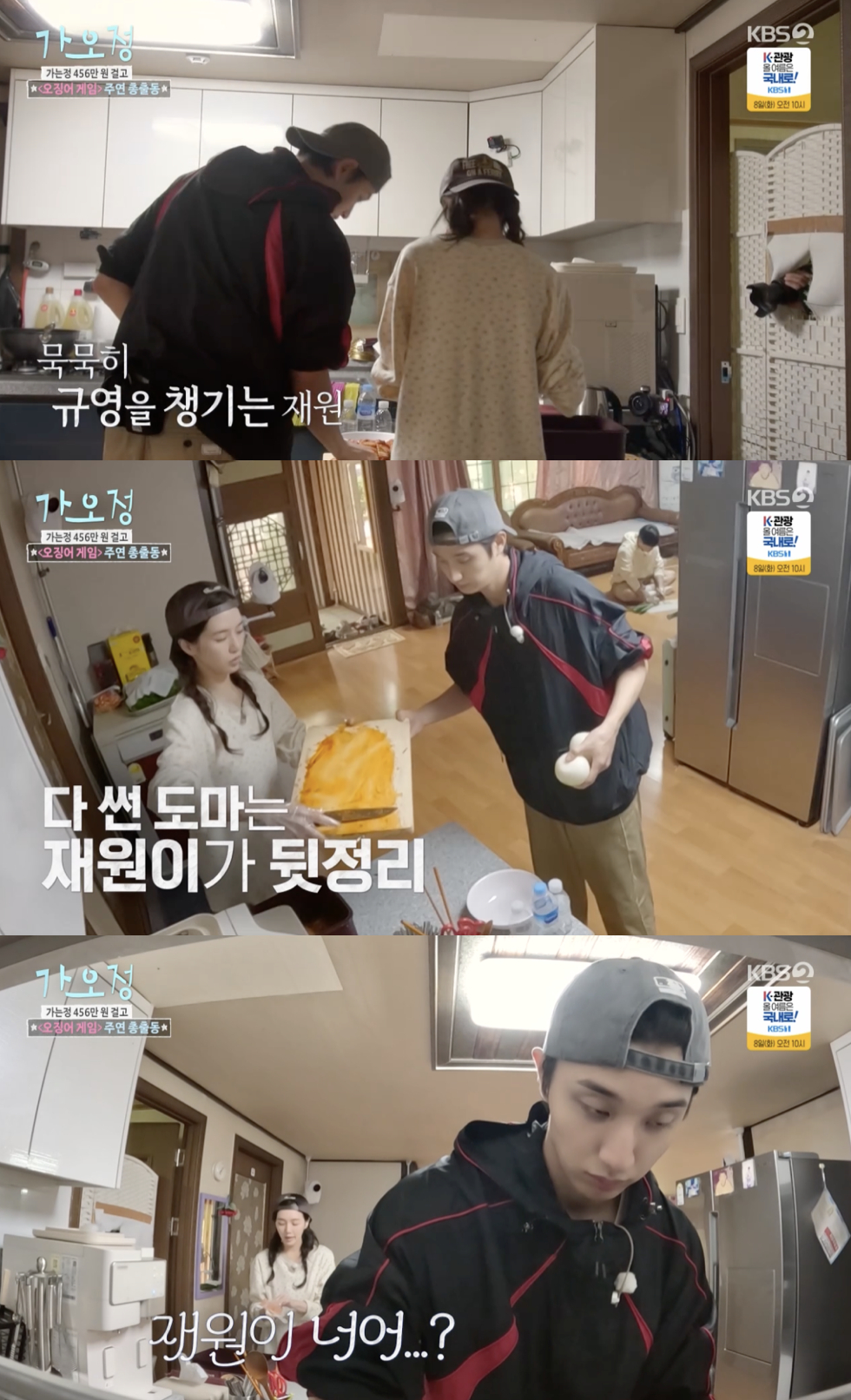 이를 본 김재원은 주위를 두리번거리더니 곧바로 휴지를 챙겨와 직접 박규영의 옷을 닦아주는 섬세함을 보였다. 이어 박규영이 다 썬 도마까지 챙겨 닦아주며 자연스러운 케어를 이어가 눈길을 끌었다.