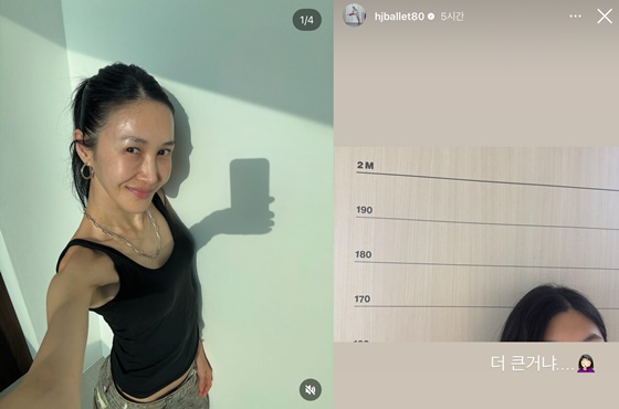 윤혜진은 5일 자신의 인스타그램 스토리에 "더 큰 거냐"라는 짧은 글과 함께 지온 양의 사진을 게재했다.