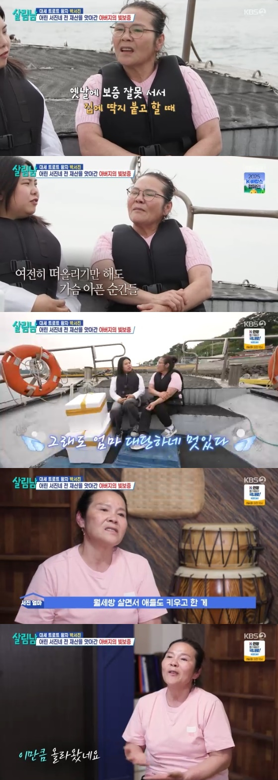그는 "남의 빚 때문에 우리 재산이 넘어갔다. 빚이 그때 당시 3천3백만원이었다. 새 배 산지 7개월 만에 딱지가 붙었다"고 말하며 씁쓸한 표정을 지었다.
