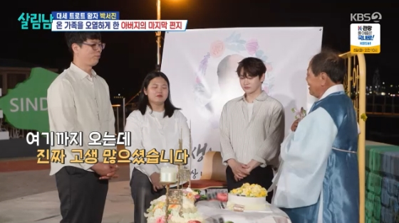 한편 아버지는 가족들을 위해 몰래 써온 편지를 낭독해 현장을 눈물바다로 만들었다. 그는 빚보증을 잘못 서서 일용직을 전전하게 된 큰아들에 대한 미안함과 마음이 아플 때 자신의 옆을 지켜준 박서진에 대한 고마움을 전해 모두를 울컥하게 했다.