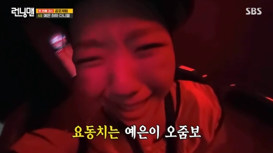 방송인 지예은이 공포체험 도중 오줌보를 부여잡았다.