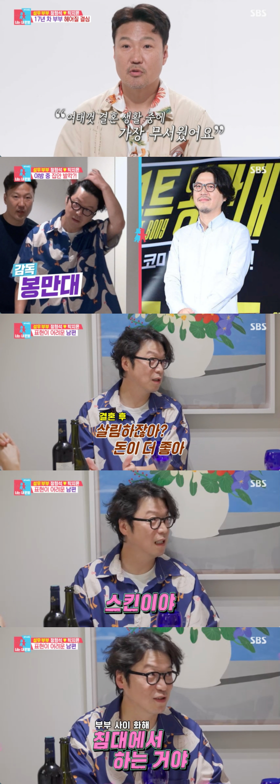 봉만대는 부부 싸움 분위기를 감지한 후 "연애할 때는 편지가 좋고, 결혼하면 돈이 좋다. 거기서 좀 더 지나면 스킨십이 좋다. 부부 사이 화해는 침대에서 하는 거다. 즉 행동이 중요하다는 말"이라고 조언했다.