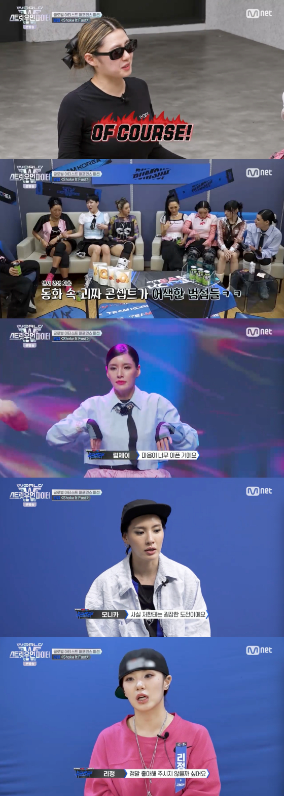 8일 방송된 엠넷 예능 프로그램 '월드 오브 스트릿 우먼 파이터'에서는 네 개 크루가 세미파이널 '글로벌 아티스트 퍼포먼스 미션'과 '댄스 필름 미션'에 임하는 모습이 그려졌다.