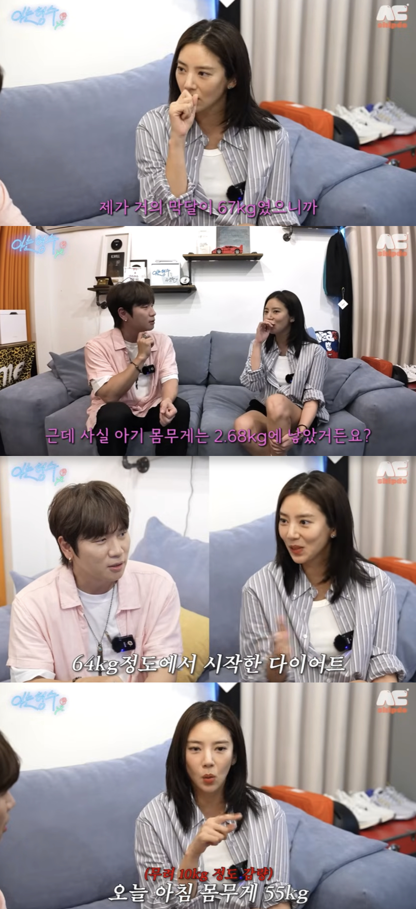 특히 산후조리원에서의 감량 경험도 언급했다. 그는 "산후조리원에서 많이 빼놓는 게 좋은 것 같다. 저는 조리원에서 8kg을 빼놓고 나왔다"고 솔직하게 전했다.