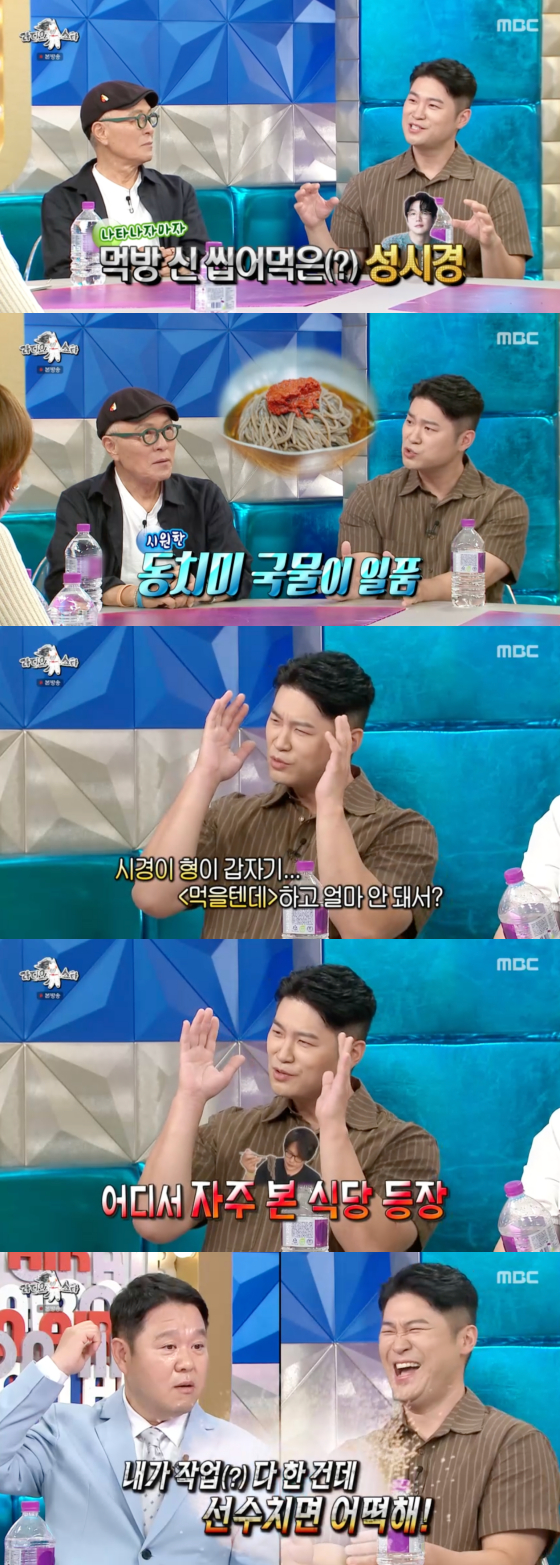 최자는 "그런데 (성시경이) 유튜브를 시작하고 얼마 안 됐을 때 어디서 많이 본 가게가 나오더라. 그 막국수 맛집이었다. 삐쳐서 두 달 동안 안 갔다. 막국수 먹고 싶은데 참았다"고 고백해 웃음을 자아냈다.