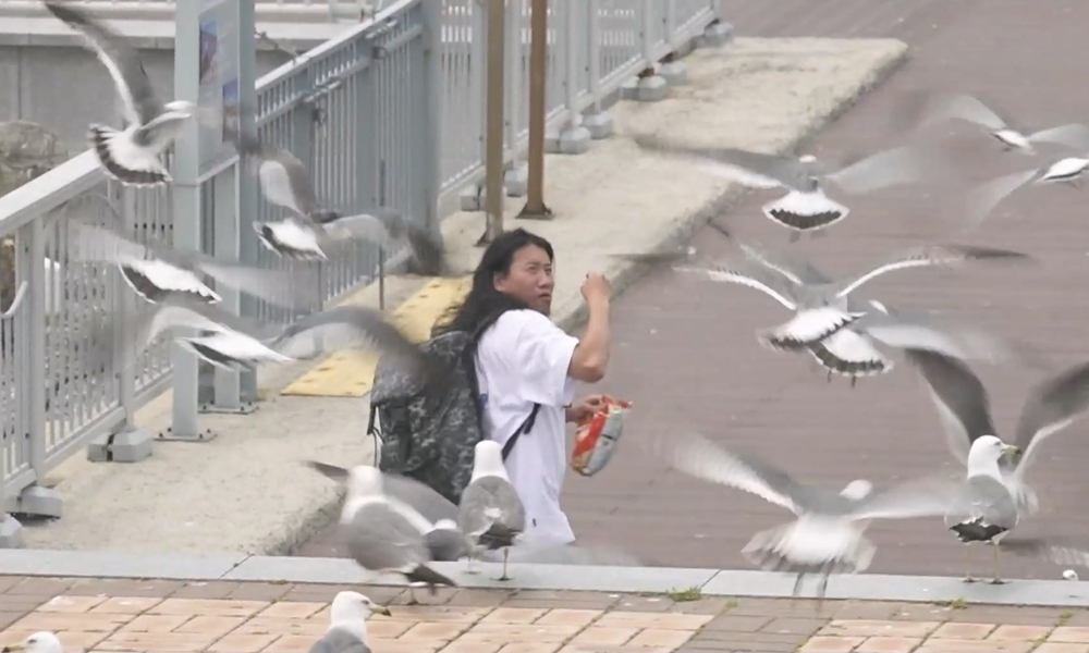 오토바이 라이더들의 필수 드라이브 코스인 시화나래휴게소에 도착한 그는 바다 앞 귀여운 갈매기들을 보고 새우과자를 사 온다. 하지만 그가 새우과자 봉지를 뜯자마자, 수많은 갈매기들이 몰려들기 시작한다.
