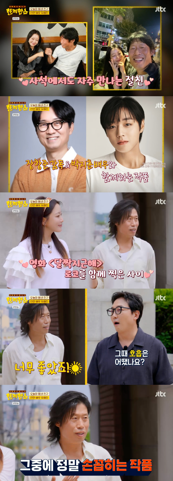 이날 중발로 등장한 유해진은 "장항준 감독이 연출하는 사극 영화 '왕과 사는 남자' 찍는 중이라 머리가 길다. 박지훈과 함께 찍고 있다. 요즘 일이 엄청 바빴다"고 밝혔다.