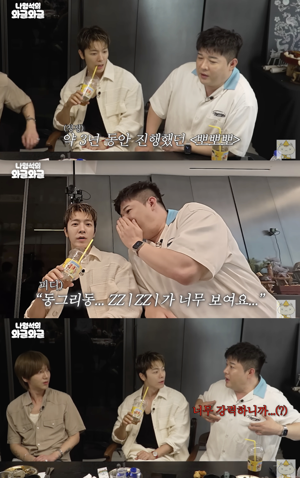 또한 그는 어린이 프로그램 '뽀뽀뽀'에서 6년간 출연한 일화도 공개했다. "아이들하고 안무를 하는데 PD가 촬영을 멈추고 달려와서 '동그리 동, 옷이 타이트해서 찌찌가 너무 보여요'라고 했다"라며 현장 비하인드를 전해 폭소를 유발했다.