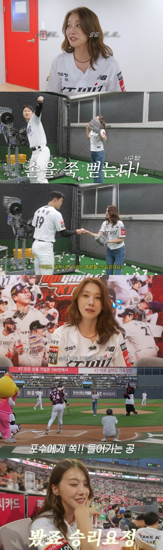 공개된 영상에는 지난 3일 수원 kt위즈파크에서 열린 KT위즈와 키움 히어로즈의 경기에서 시구자로 나선 유인영의 모습이 담겼다.