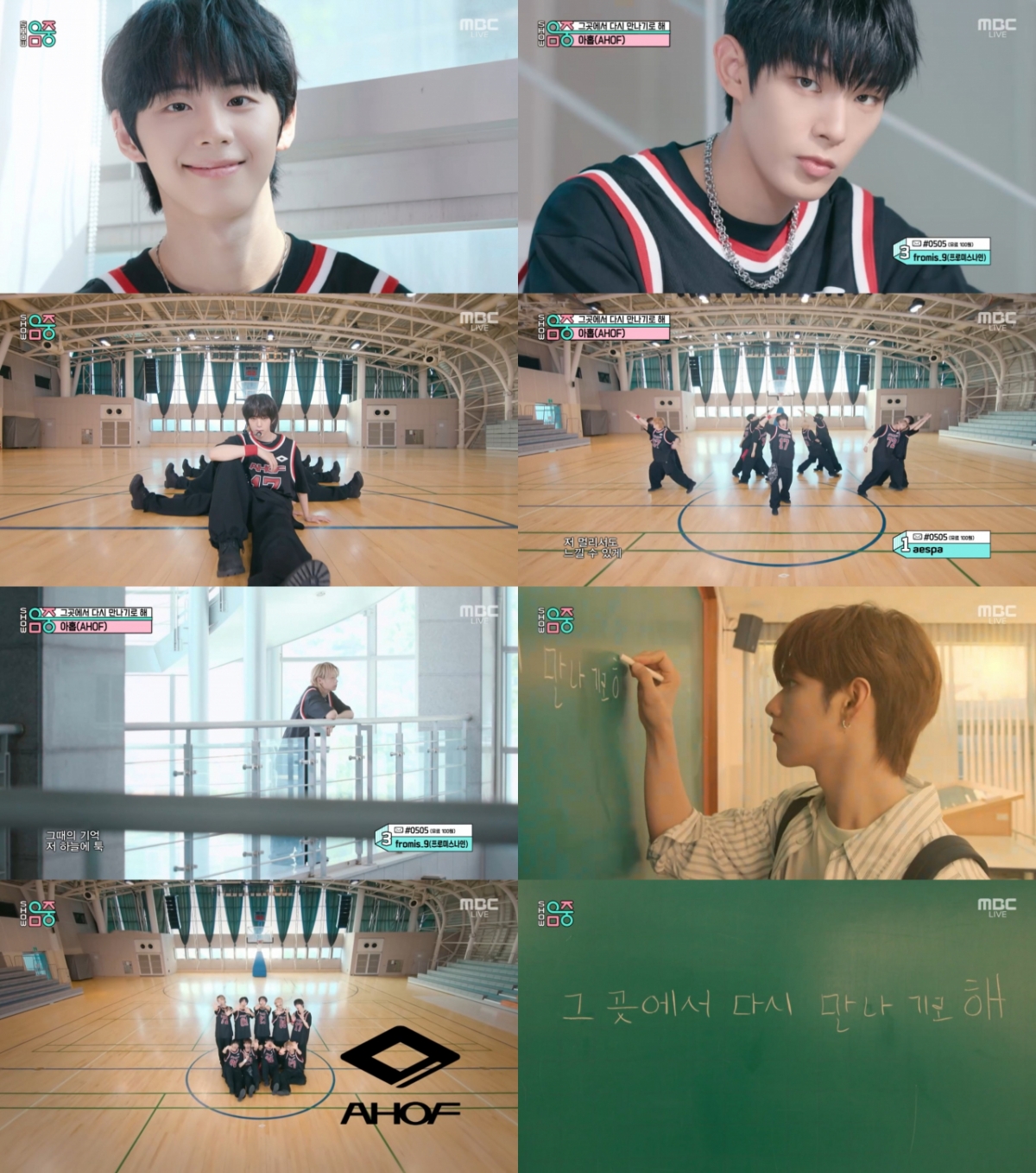 이날 아홉(AHOF)은 실내 스튜디오가 아닌 야외에서 특별한 무대를 선보여 시선을 사로잡았다. 멤버들은 청춘의 감성이 가득 담긴 학교와 강당을 배경으로 마치 영화 속 한 장면 같은 퍼포먼스를 완성했다.