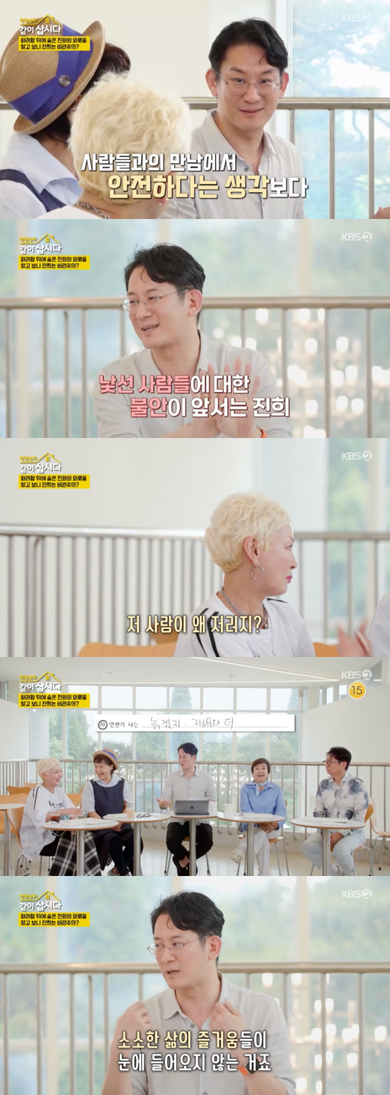 14일 방송된 KBS 2TV 예능 프로그램 '박원숙의 같이 삽시다'에서는 박원숙, 혜은이, 윤다훈, 홍진희가 정신의학과 이광민 전문의를 만나는 모습이 그려졌다.