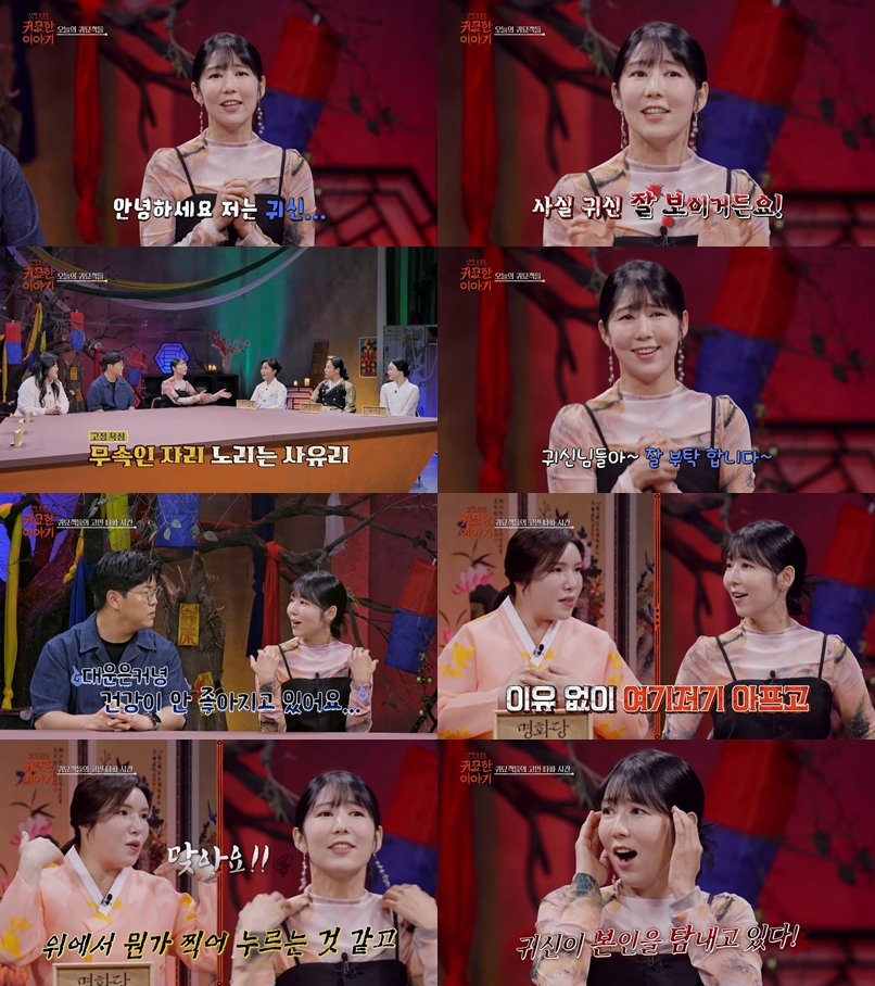 이어 "제가 귀신 많이 보게 되면 이쪽(무속인 자리)에 앉아도 되는 거냐"라고 무속인 자리를 노리며 너스레를 떨어 모두를 웃게 했다.