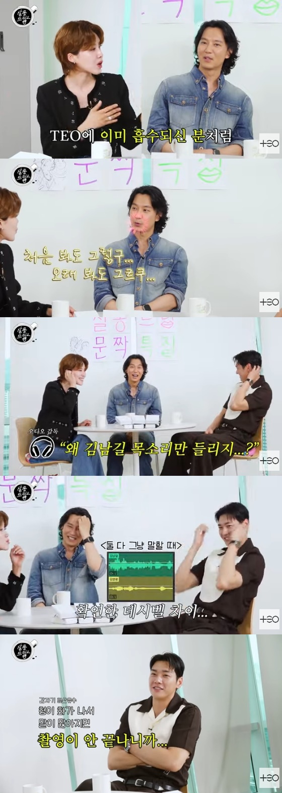 장도연은 "김남길씨는 이미 TEO에 이미 흡수되신 분처럼 (제작진과) 이야기를 나누셨고, 김영광씨는 군중 속의 고독처럼 대기실에서 조용히 계셨다"고 꼬집어 웃음을 자아냈다. 이에 김남길은 "여기 은근히 아는 사람이 많아서 PD들이랑 오랜만에 만나 너무 반가워서 인사했다"고 설명했다.