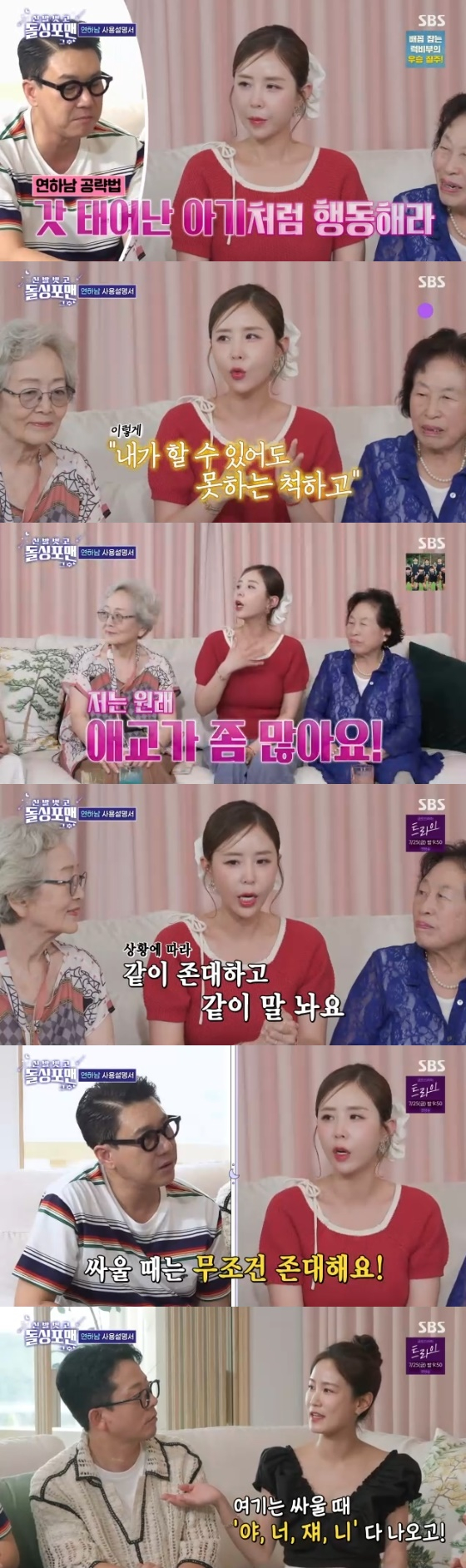 또 '가끔은 슬쩍 오빠라고 불러라'라는 스킬을 공개하면서 "저는 존대한다. 둘이 장난치면서 '오빠, 이거 드실래요?'라고 하면 좋아하더라"라고 말했다.