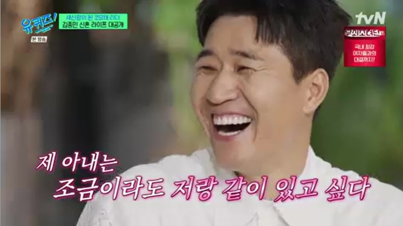 앞서 4월 결혼한 '새신랑' 김종민은 "신혼 생활이 너무 좋다. 예전엔 집에 들어가면 항상 불 꺼진 방이었는데, 이제는 딱 들어가면 불이 켜져 있고 (아내가) 저기서부터 달려온다. 반겨줄 때 너무 행복하다"라고 웃어 보였다.