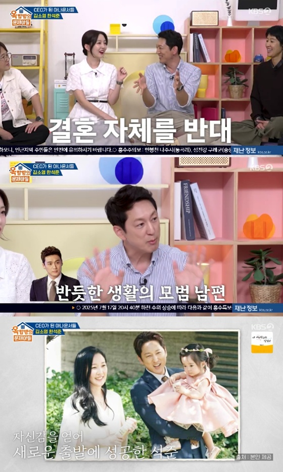한석준은 "이렇게 얘기 들으니까 엄청 비난 받을 소리였구나"라며 "두 사람의 결혼을 반대한 것이 아니라 결혼 자체를 반대했다. 그 당시 저는 구렁텅이 안에 빠져 있는 삶을 살고 있었다"고 해명했다.