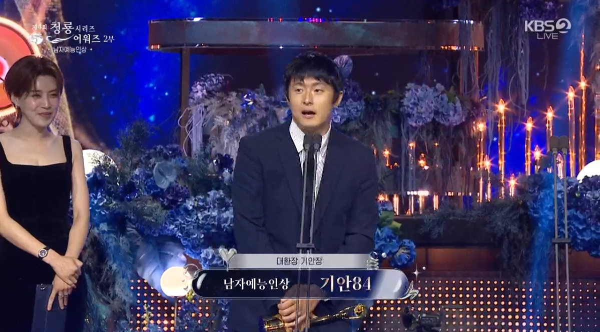 이날 남자예능인상 수상자로 선정된 기안84는 "엄청 떨린다. 재작년에 이 예능 하자고 했다. 힐링보다 고생하는 느낌으로 기괴하게 집을 지었다. 고마웠던 게 배에서 일주일 동안 자는데 진이 월드스타라 도망갈까봐 걱정했는데 함께 해서 감사하고 지예은도 함께 해서 감사"라며 "2번째 시즌도 터미네이터처럼 재밌게 해보고 싶다. 큰 상 주셔서 감사하다"라고 말했다.