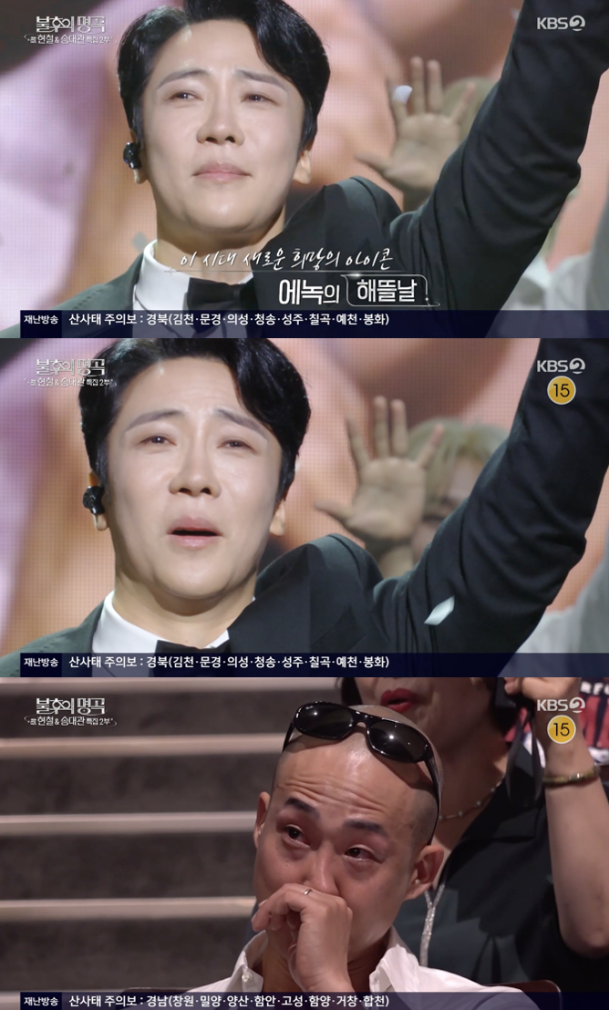 가수 에녹은 이날 故송대관의 대표곡 '해뜰날'을 선곡하며 무대에 섰다. 그는 "선배님의 희망 메시지를 관객들과 함께 나누고 싶었다"며 진심을 담은 무대를 예고했다.