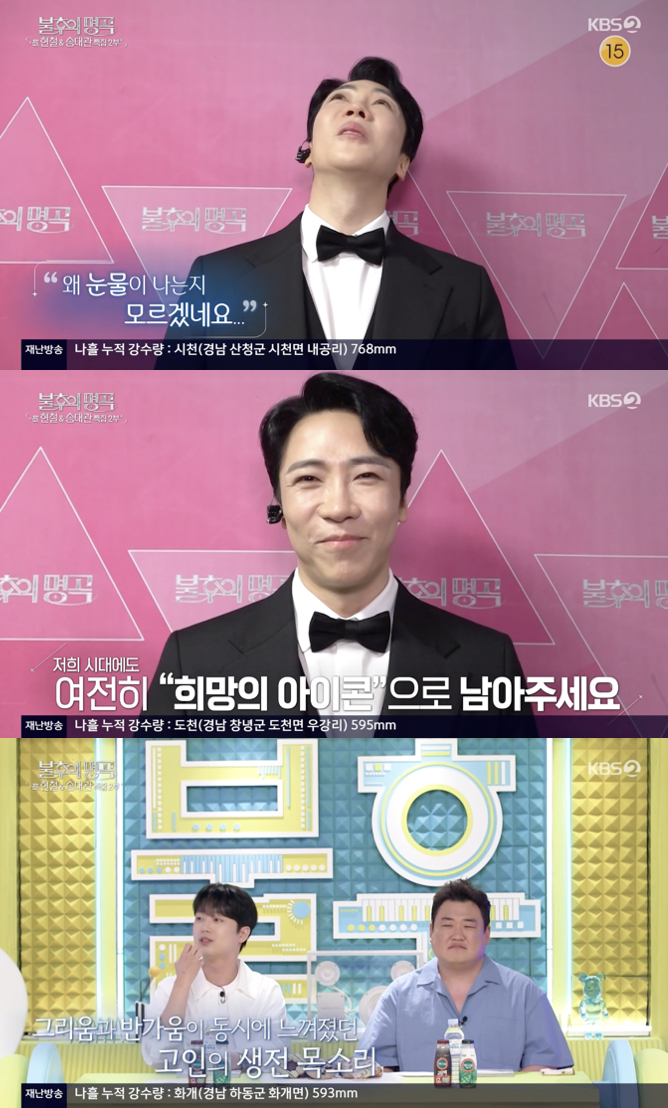 스튜디오에서 이를 지켜보던 MC 이찬원 역시 눈물을 삼키지 못했다. 이찬원은 "저는 송대관 선생님 육성 나올 때 눈물이 왈칵 차오르더라"며 송대관을 향한 깊은 존경심과 그리움을 드러냈다.