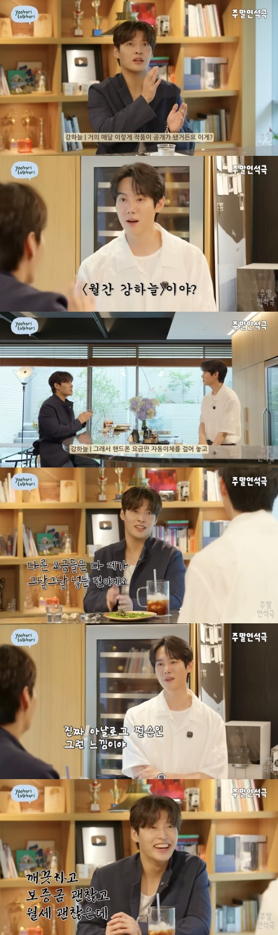 또 강하늘은 집을 고르는 기준에 대해서도 "월세 싸고 보증금 괜찮은 곳이면 된다. 그것 말고 다른 기준이 있느냐"며 "집은 내가 원하는 대로 꾸미면 된다. 암막 커튼하고 지내기 때문에 뷰는 그다지 중요하지 않다"고 설명했다.
