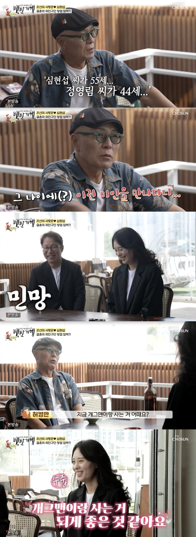 허영만은 55세의 나이에 44세 아내와 결혼한 심현섭에게 "아니 그 나이에도 이런 미인을 만나다니.."라며 너스레 섞인 뼈 있는 멘트를 던졌고, 이를 들은 정영림은 수줍은 표정으로 심현섭의 허벅지를 살짝 꼬집었다.