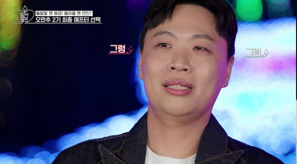 마침내 '오만추' 최종 애프터 선택 시간이 다가왔다. 먼저 신봉선이 이형철에게 애프터 신청을 했지만, 이형철은 "연인은 마지막 결과를 내지 못하면 남이 된다. 좋은 인연의 관계를 오래도록 이어가고 싶은 마음이 더 크다"며 아무도 선택하지 않았다.