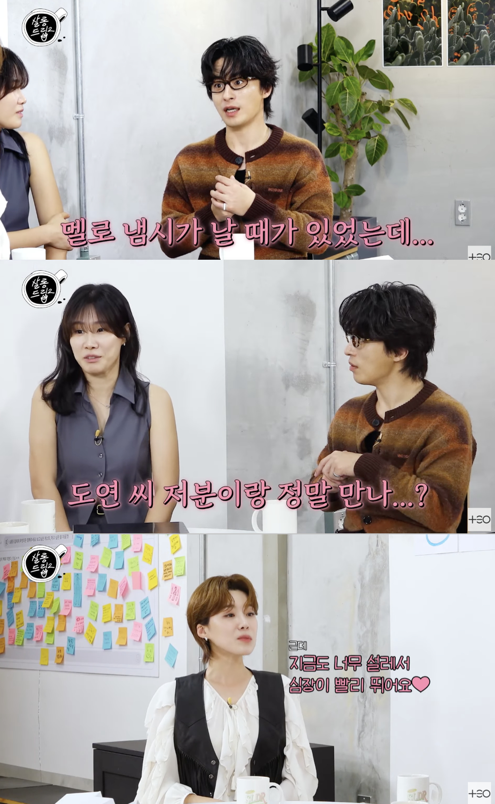 이어 이옥섭은 "(교환이) 저한테 물어보기도 한다. '도연 씨랑 저 분 만나?'라고"라고 덧붙여 웃음을 자아냈다. 이를 들은 장도연은 "설렌 적은 너무 많죠. 저도 만났으면 좋겠어요"라고 진심 어린 고백을 전했다.