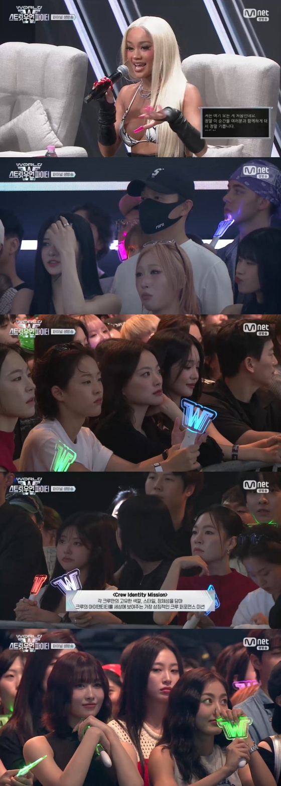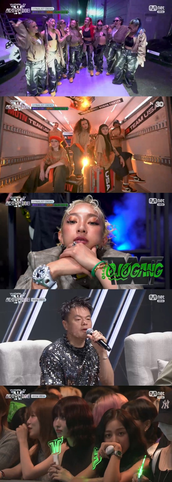 22일 생방송으로 진행된 엠넷 예능 프로그램 '월드 오브 스트릿 우먼 파이터' 파이널에서는 호주팀 에이지 스쿼드(AG SQUAD), 미국팀 모티브(MOTIV), 일본팀 오사카 오죠 갱(OSAKA Ojo Gang) 등 세 크루가 최종 우승을 두고 마지막 춤 싸움을 벌이는 모습이 그려졌다.