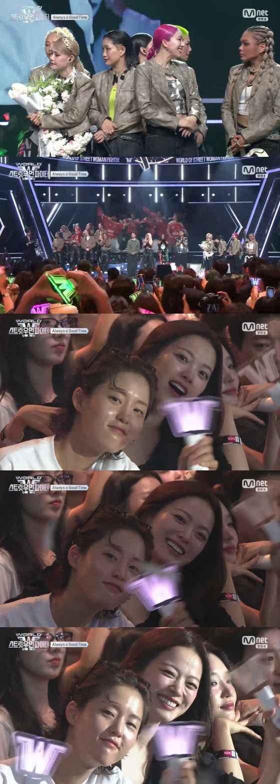 이날 파이널 생방송 현장에는 트와이스 멤버 모모와 지효가 자리해 시선을 모았다. 모모는 파이널에 진출한 오사카 오죠 갱의 크루원 하나의 친동생이다.
