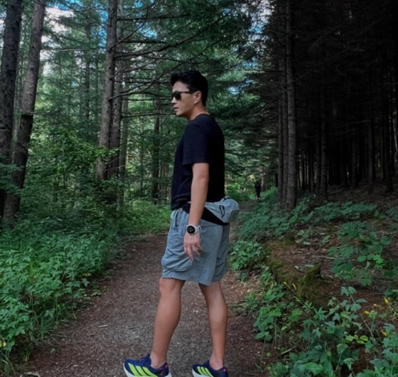 공개된 사진 속 진태현은 편안한 운동복, 러닝화 차림에 선글라스를 끼고 산책하고 있다. 그는 "국민의 숲 산책 with 사랑하는 아내와"라며 박시은을 향한 애정도 잊지 않았다.