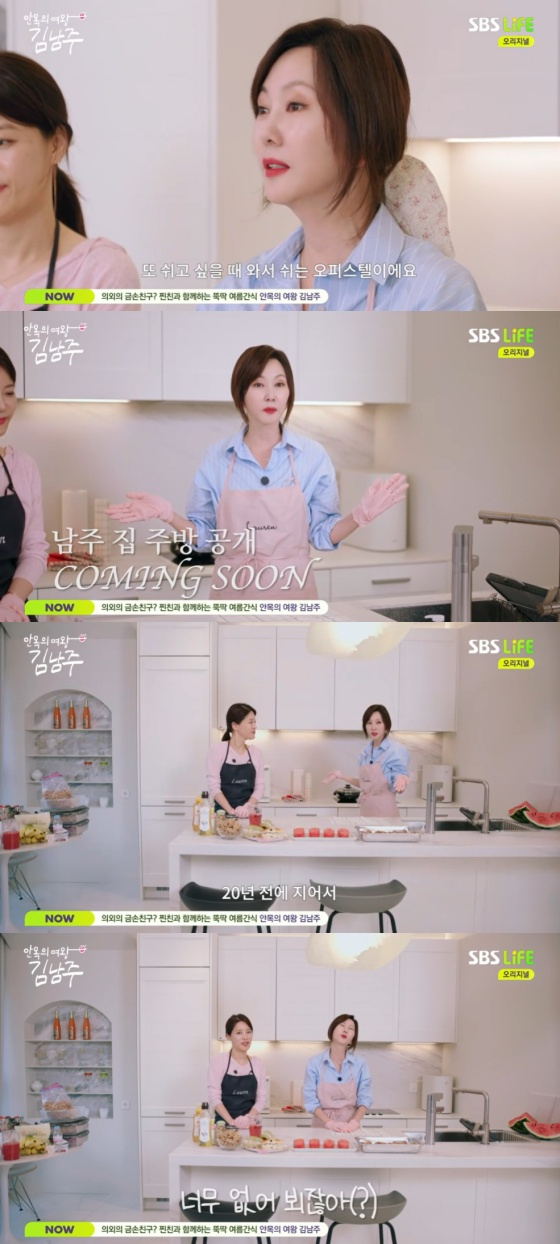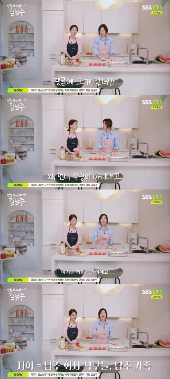 이날 김남주는 지인과 함께 디저트 만들기에 나섰다. 그러던 중 지인은 김남주를 향해 "왜 언니 주방이 아니냐는 댓글도 있더라"고 말했다.