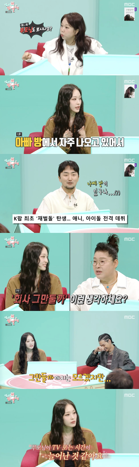 이날 애니는 "전참시를 자주 보냐"는 질문에 "아빠 방에서 자주 나오고 있다"라며 아빠 전용 방이 따로 있음을 언급해 시선을 끌었다.