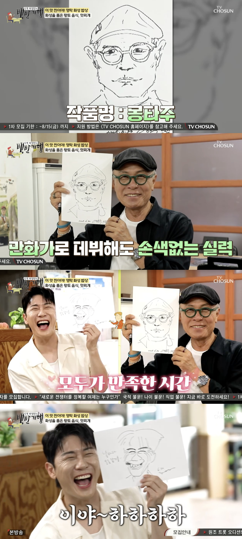 두 사람은 즉석에서 서로의 얼굴을 그려주는 시간도 가졌다. 허영만은 영탁의 매력 포인트인 인디언 주름을 살려 개성 있는 초상화를 완성했고, 영탁은 허영만의 트레이드 마크인 모자와 안경을 그리며 수준급 그림 실력을 자랑했다.