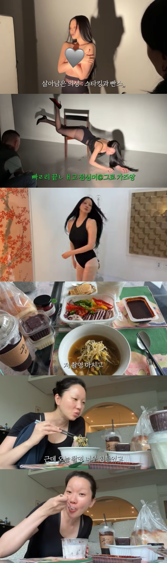 모델 장윤주가 폭풍 촬영 후 식단을 공개했다.