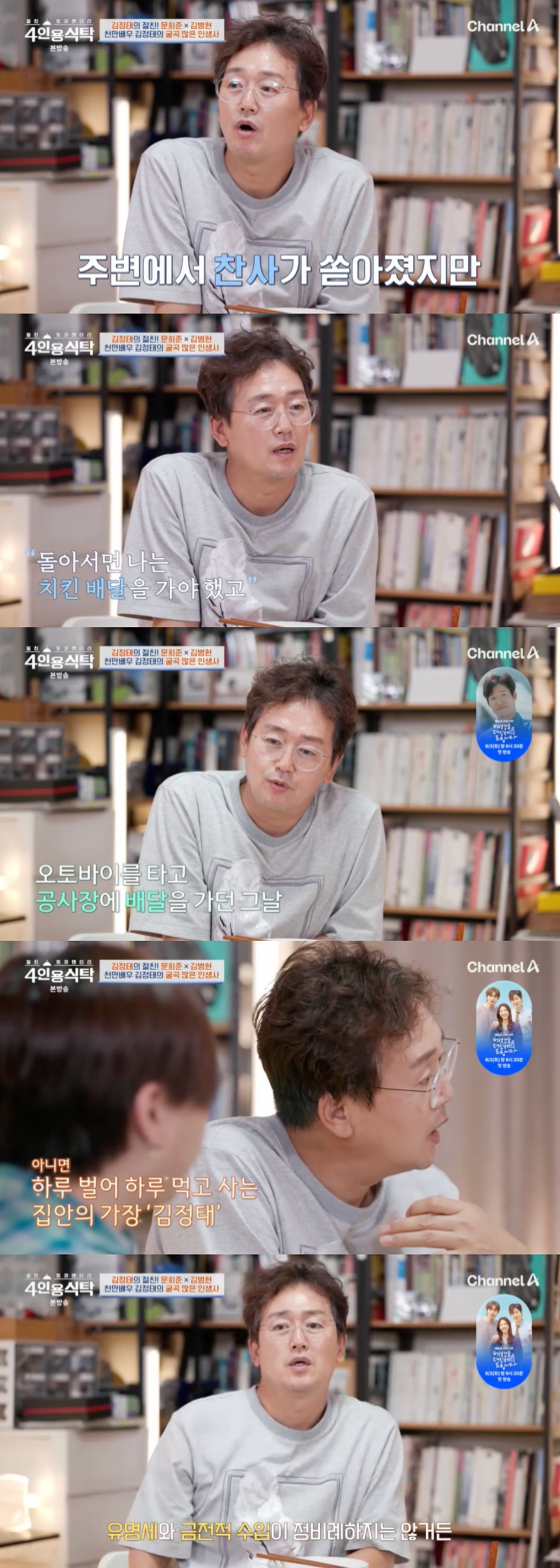 이날 김정태는 "주변에서 연기 잘했다고 찬사가 쏟아졌지만 나는 돌아서면 치킨 배달을 가야 했다. 혼자 배달을 가면서 괴리감이 너무 크더라. (배우로서) 유명세와 금전적 수입이 정비례하지 않았다"고 운을 뗐다.