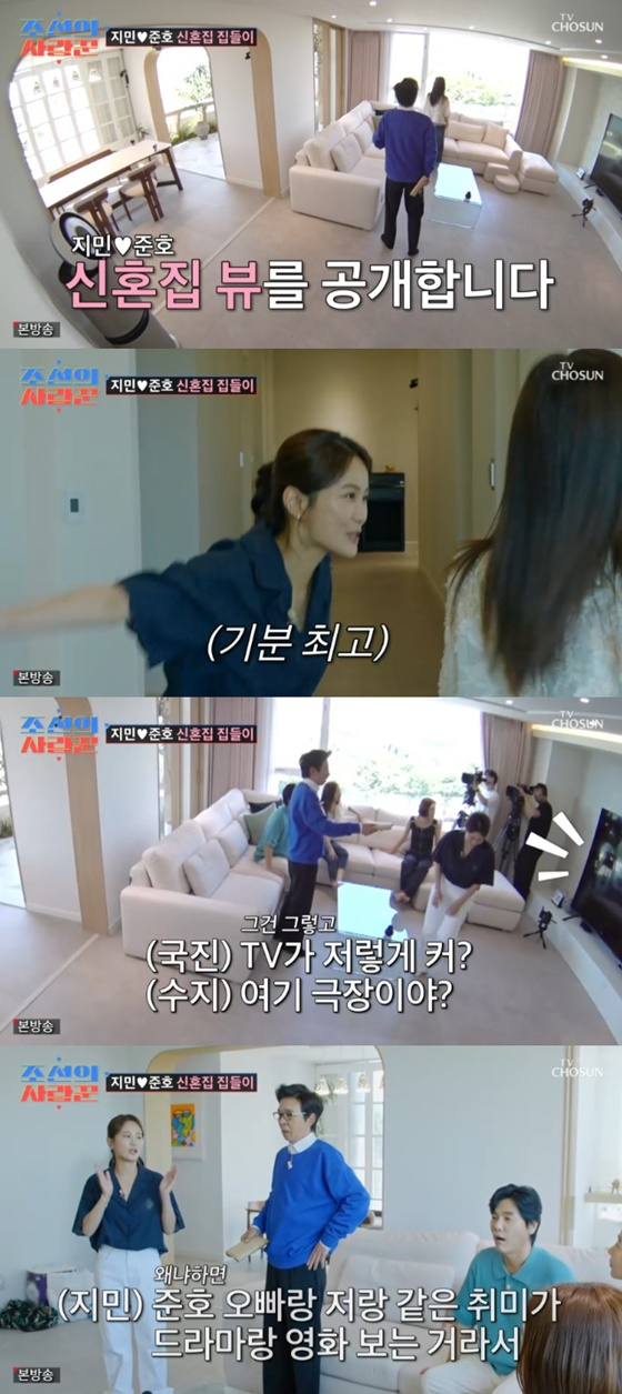 28일 방송된 TV조선 예능 프로그램 '조선의 사랑꾼'에는 김지민, 김준호의 신혼집에 방문한 김국진, 강수지, 최성국, 황보라의 모습이 그려졌다.