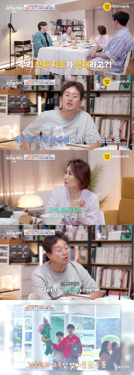 이에 박경림이 "아들이 영재라고 들었다"고 하자 김정태는 "일주일에 한 번 대학교 가서 교수님들하고 (만난다)"고 답했다. 첫째 아들이 대학교 과학 영재원에서 수업을 듣는 것.