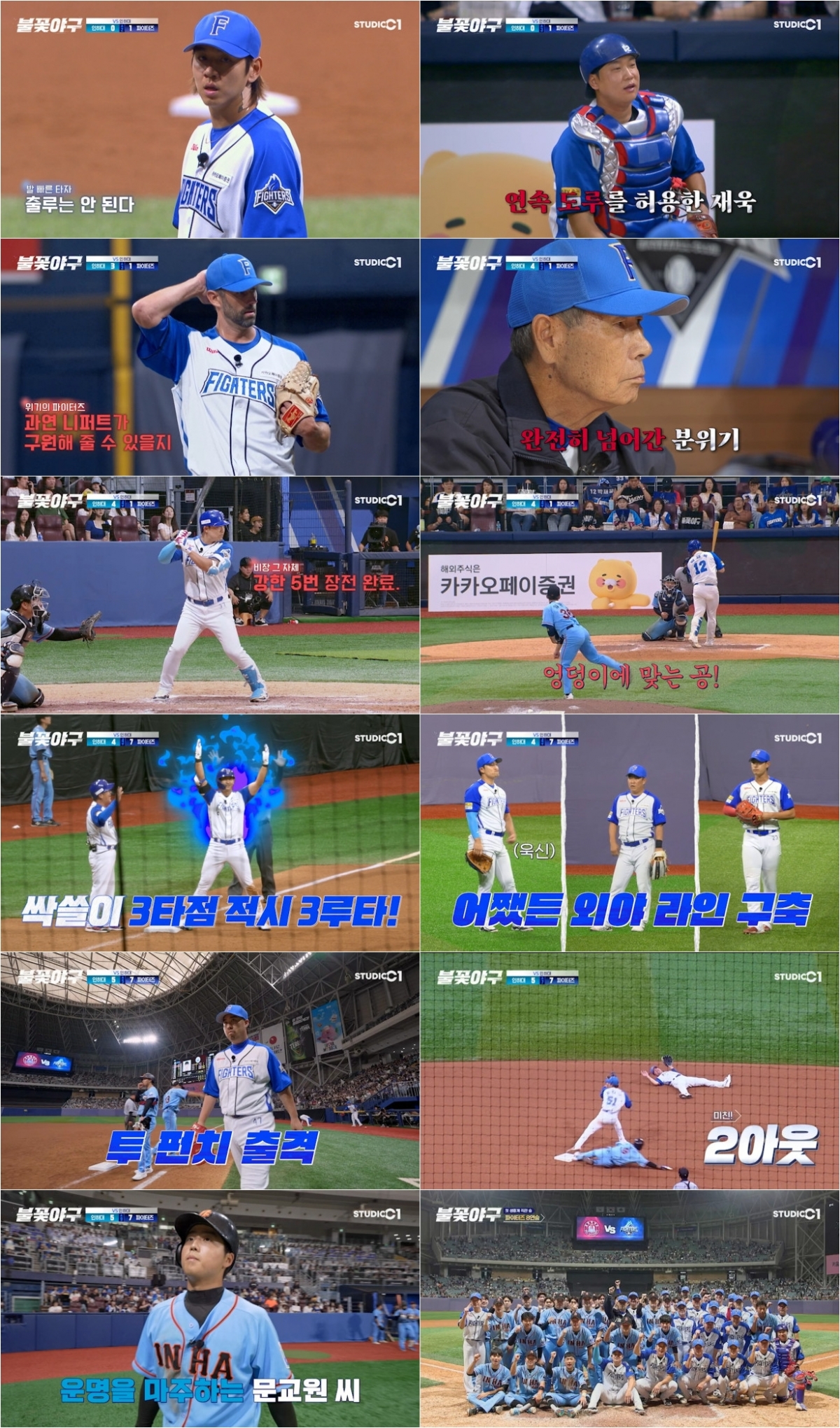 28일 오후 8시 스튜디오C1 공식 유튜브 채널을 통해 공개된 야구 예능 프로그램 '불꽃야구' 13화에서 불꽃 파이터즈는 부활한 캡틴 박용택과 '천재 유격수' 김재호의 명품 수비를 앞세워 인하대를 7 대 6으로 꺾었다.