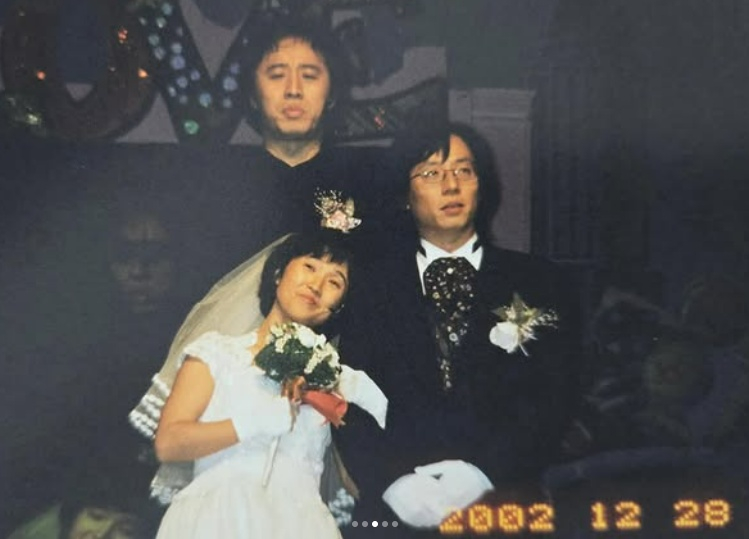 방송인 송은이가 유재석과 '가짜 결혼식' 사진을 공개했다.
