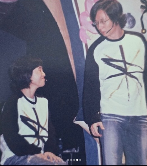 사진에는 송은이와 유재석이 함께 했던 과거 모습들이 담겨 있었다. 서울예대 92학번 동기인 이들은 같은 코미디 프로그램 코너를 하며 오랜시간 인연은 맺어왔다.