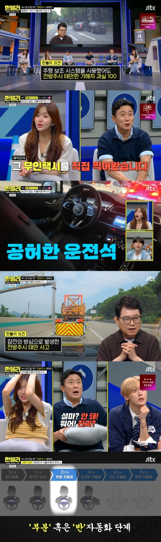 29일 방송된 JTBC '한문철의 블랙박스 리뷰'(이하 '한블리')에서는 전방주시 캠페인을 벌이는 가운데, 속도 및 차로를 자동 유지하는 반자율주행 기술인 주행 보조 시스템에 대해 집중 조명했다.
