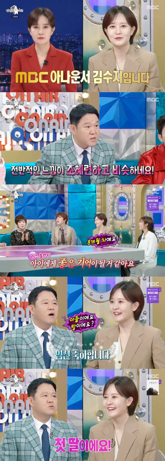 이날 김수지는 "제가 임신을 했다. 뱃속 아기에게 좋은 기억으로 남을 것 같아서 '라디오스타'에 출연했다"고 밝혔다.
