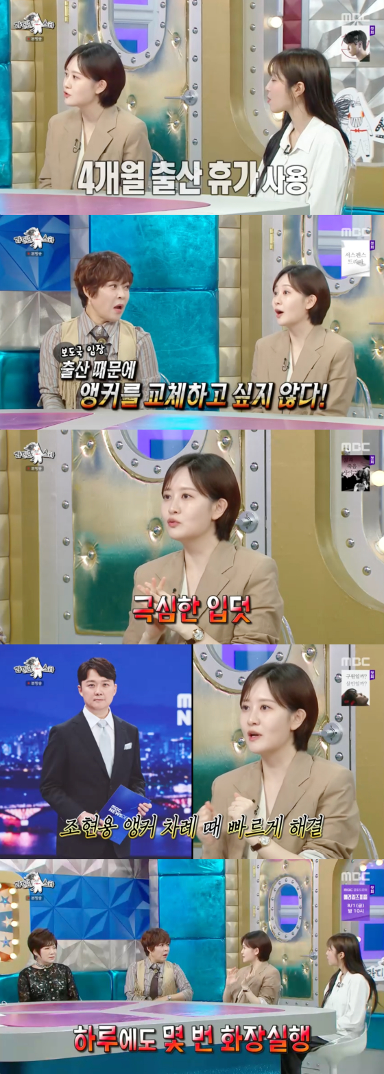 그러면서 "뉴스 진행할 때도 자꾸 (속이) 안 좋더라. 그래서 조현용 앵커 차례 때 화장실로 가서 빠르게 해결하고는 했다. 그러면 순간적으로 좋아진다. 그런 식으로 3개월 넘게 진행했다"고 전했다.