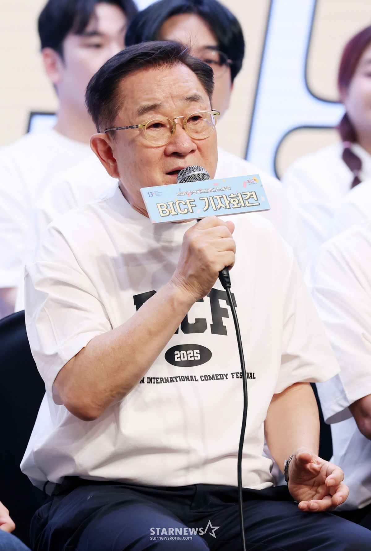 1일 오후 서울 마포구 상암 스탠포드 호텔에서 제13회 '부산국제코미디페스티벌'(BICF, 이하 '부코페') 기자회견이 열렸다. BICF 조직위원회(김준호 집행위원장, 최대웅 부집행위원장, 조광식 부집행위원장, 김대희 이사, 성하묵 이사, 조윤호 프로그래머), 개그콘서트with부코페(신윤승, 조수현, 박은영, 유연조, 서성경), 변기수의 해수욕쇼(변기수, 탁(배치기), 송영길, 김태원), 안영미쇼-전체가슴관람가(안영미), 만담어셈블@부코페(구정모, 유영우, 오디디, 시옷시옷, 우다온, 전예원, 양혜원), 희극상회(임종혁, 장윤석), 폐막공연-나는 개가수다(김나희, 이상호, 이상민), 북콘서트&폐막공연 MC(이홍렬), 썰피소드(이광섭, 이원구)가 참석했다.