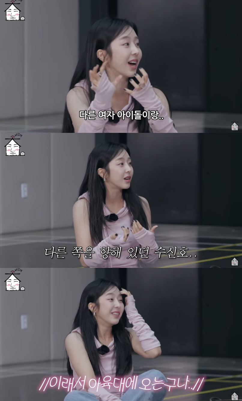 이어 그는 "내가 가고 있었는데 어떤 남자 아이돌분이 저 멀리서 갑자기 (안녕하고 손인사를) 하더라. 그래서 나도 조용히 했다"라며 "그런데 난 아무것도 안 하는데 혼자 뭘 하길래 '뭐지?' 하고 뒤를 둘러봤다. 내 뒤에 다른 여자 아이돌이랑 둘이서 수신호를 하고 있었던 것. 난 중간에 있었던 것. 난 그냥 나 혼자 안녕한 사람이었다"라고 말해 모두를 폭소케 했다.