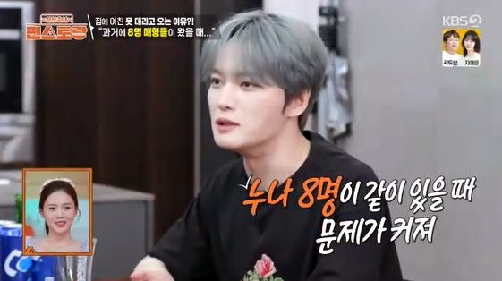 이에 7번째 누나는 "그때 엄마가 '우리 아들은 연예인이라 얼굴 망가지면 안 돼. 재중이 다른 곳은 때려도 되는데 얼굴은 건들지 마'라고 말했다"라고 에피소드를 밝혀 웃음을 유발했다.