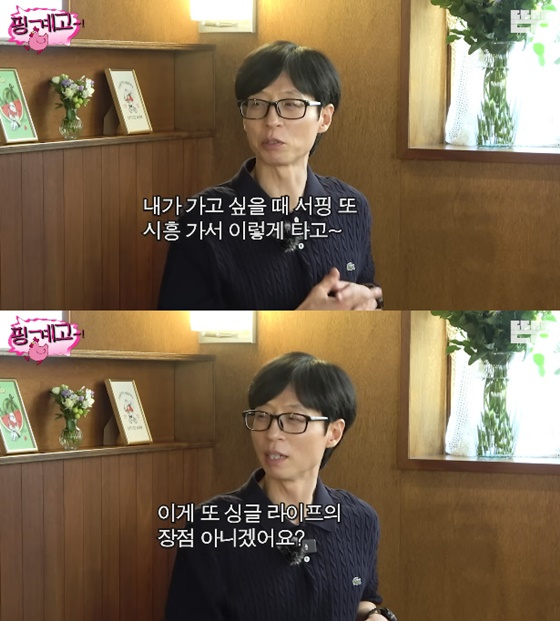 이를 들은 유재석은 "내가 가고 싶을 때 시흥 가서 타고, 바닷가 가서 타고. 이런 게 싱글 라이프의 장점 아니겠냐"고 했다.