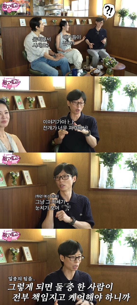 당황한 유재석은 "얘기가 좀 과격하게 흐른다. 전개가 너무 과격하다. 파도가 너무 세게 온다"며 "하고 싶은 걸 못 하는 게 아니라, 하고 싶은 걸 다 할 수는 없다"고 전했다.